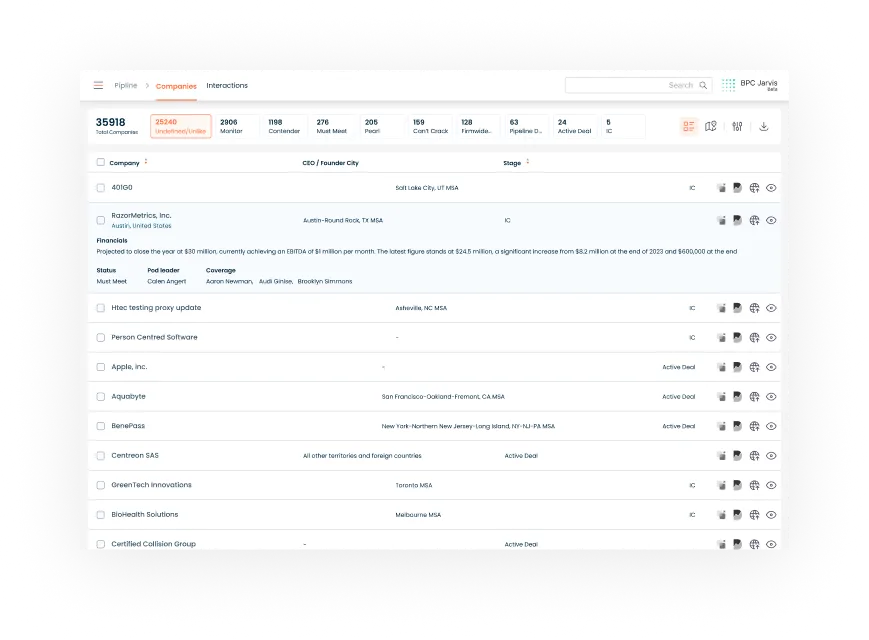 Stop shooting in the dark. Our AI-powered venture capital deal flow management software consolidates disparate companies’ details and financials into a unified platform, empowering your investment team to evaluate high-potential companies with confidence and precision.